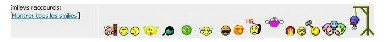 Les smileys sont là pour agrémenter votre message et y donner une petite touche amusante. Nous avons téléchargé des smileys originaux et nombreux qui vous aideront à illustrer votre post ; ils sont affichés juste au dessus de la barre d'outils. Pour insérer un smiley dans votre post, il vous suffit de cliquer dessus. Un code s'affichera alors dans votre post, constitué de deux fois deux points, et au milieu le nom du smiley.